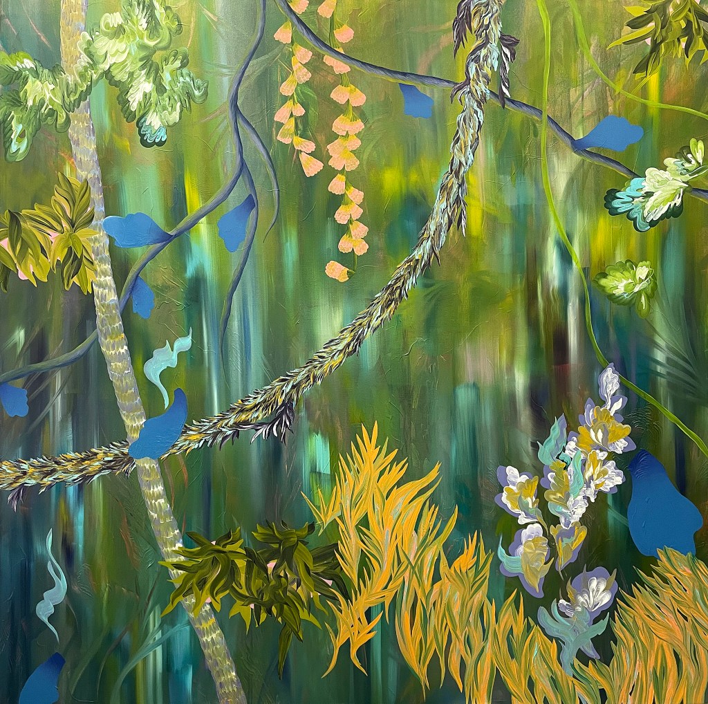 Neuvonpito, 2022. Acrylic and oil on canvas. 100 x 100 cm. (2500 eur.)Tavoittamaton, 2022. Acrylic and oil on canvas. 100 x 100 cm. (2500 eur.)Vastaus kaikkeen, 2022. Acrylic and oil on canvas. 130 x 130 cm. (3000 eur.)Näyttämö, 2022. Acrylic and oil on canvas. 100 x 120 cm. (2700 eur.)Hiljaiset karkelot, 2022. Acrylic and oil on canvas. 60 x 90 cm. (1500 eur.)